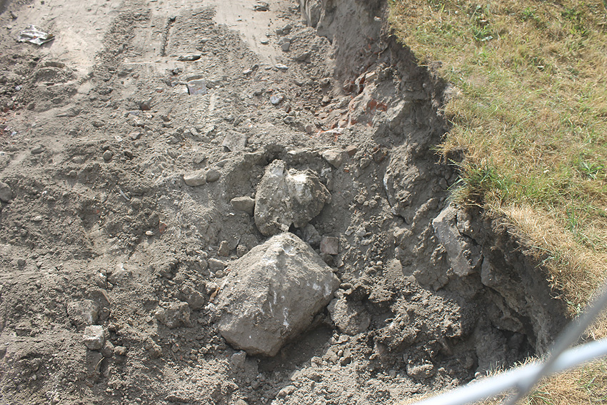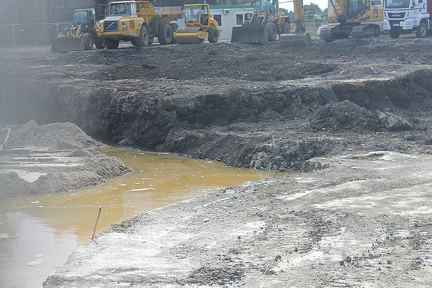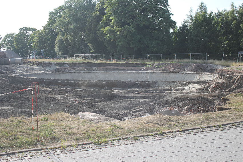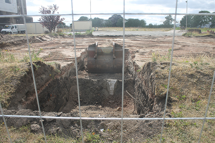 Dies ist der aktuelle Stand auf dem Gelände. Historische Mauerwerksstrukturen (in Verbindung mit dem ehemaligen Öltank) treten ans Tageslicht. Alte Ölleitungen wurden geborgen.