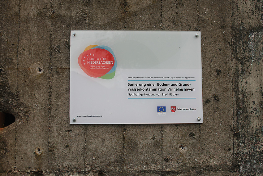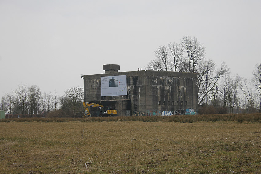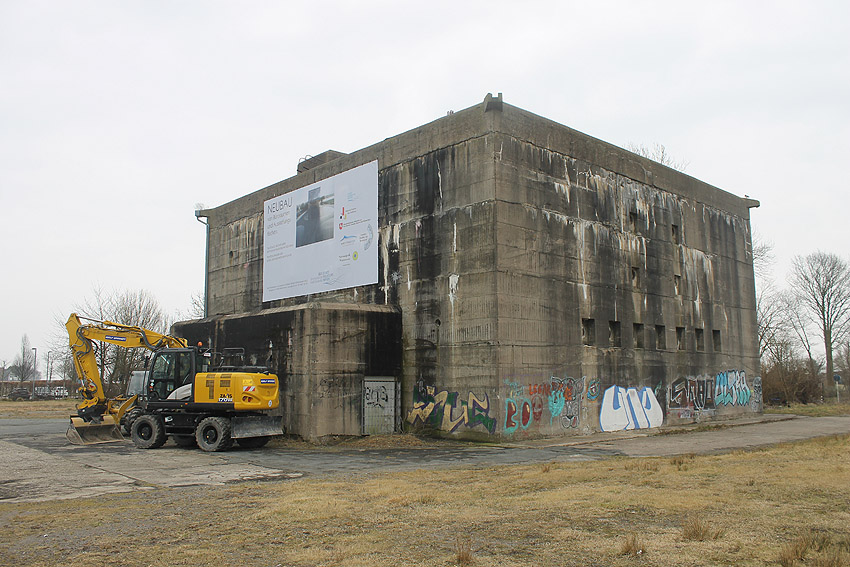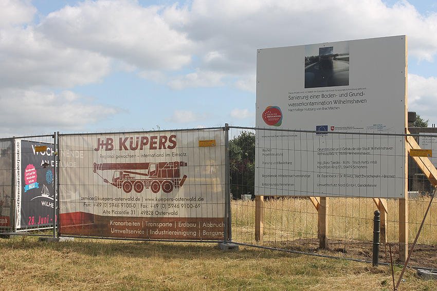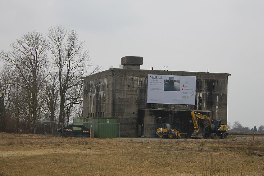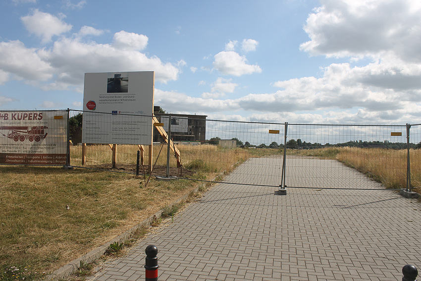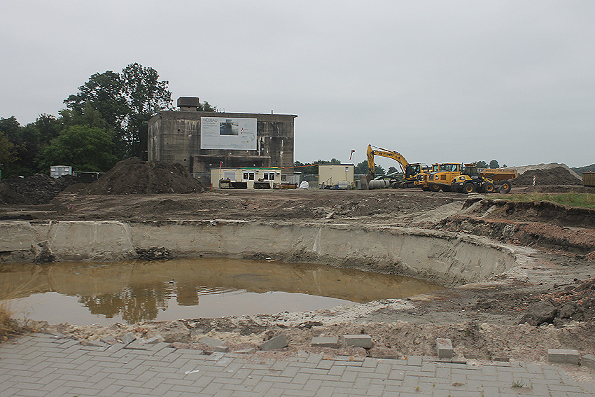 Das Gelände rund um den Bunker wurde nun abgezäunt. Die Arbeiten zur Dekontaminierung des umliegenden Bodens sind angelaufen. Erdbodenbereiche wurden bereits umgeschichtet. Auch der Bereich des noch immer vorhandenen Fundamentes des anliegenden ehemaligen Öltanks "Grodenfähre Nord" wurde freigeräumt. Das Ring-Fundament ist nun klar ersichtlich.
