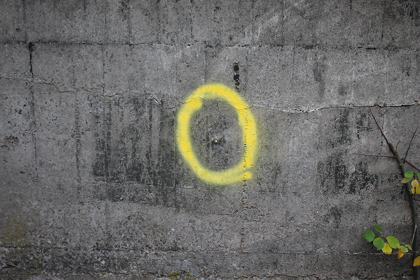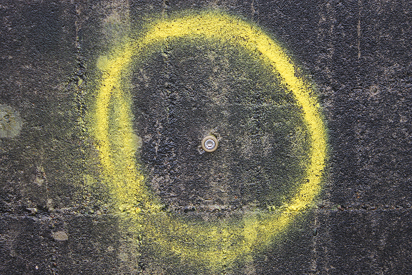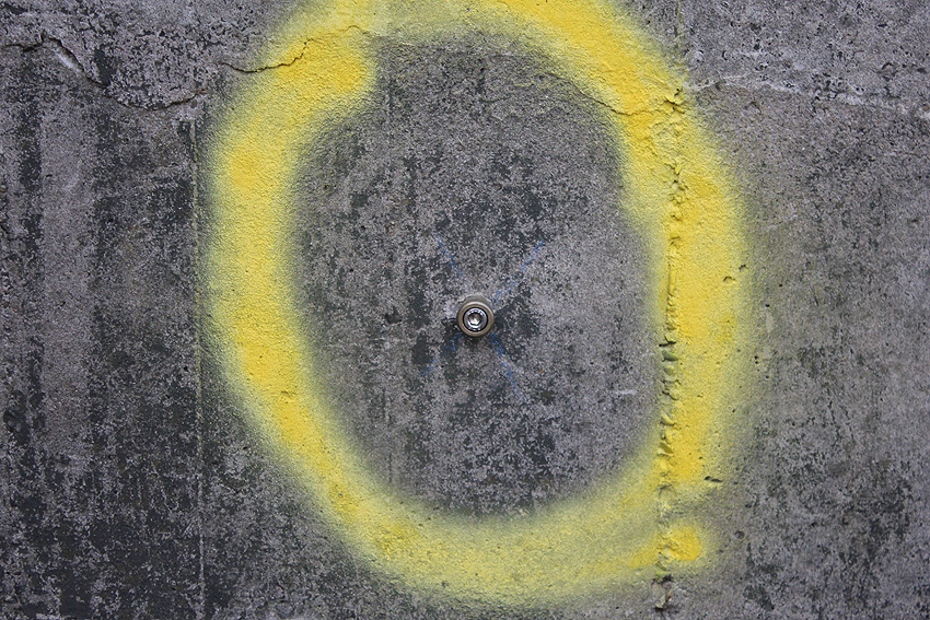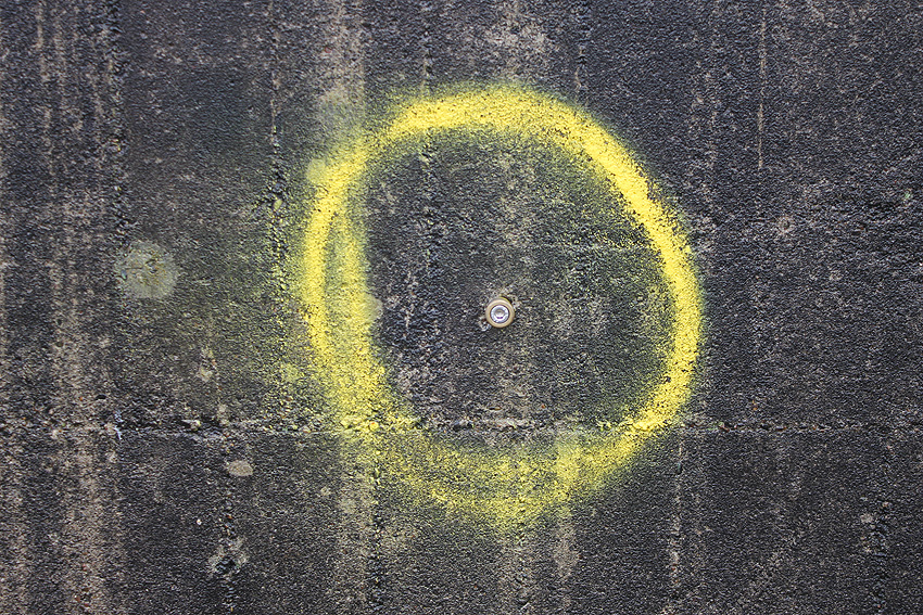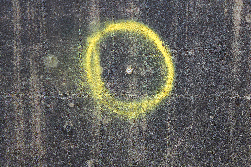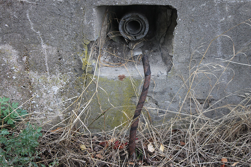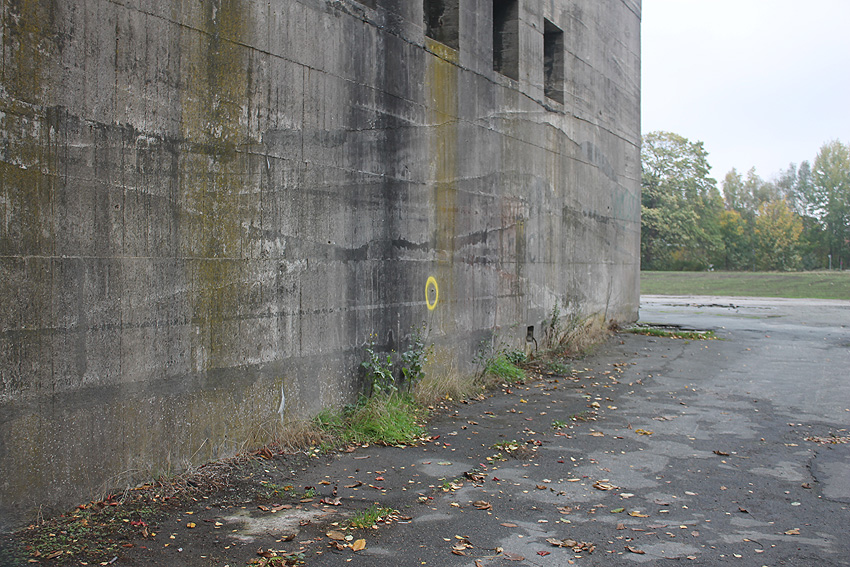 Mittlerweile (noch zu Zeiten der Geländesanierung) wurde der Bunker innen und außen vermessen. Messpunkte sind an allen vier Wänden angebracht worden: