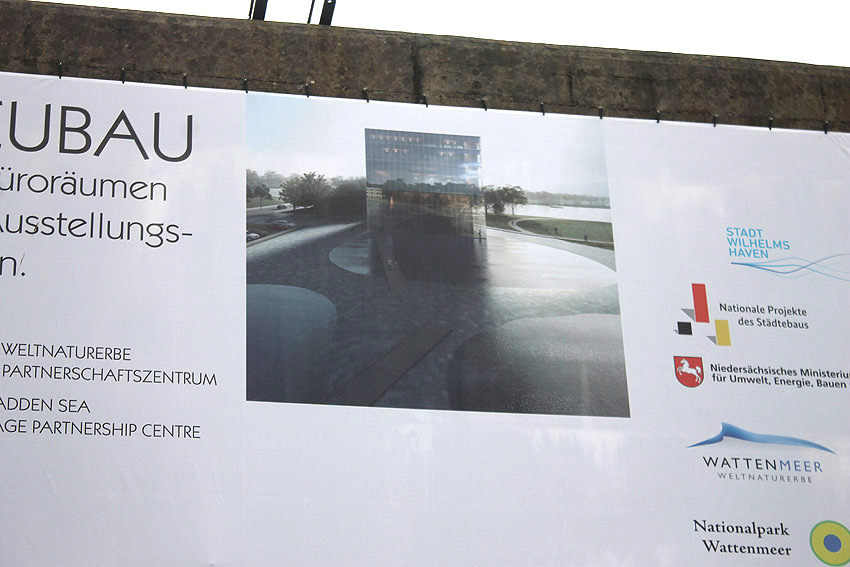 Bau des trilateralen Wattenmeer-Partnerschaftszentrums am / auf / um den T 750 Banter Ruine