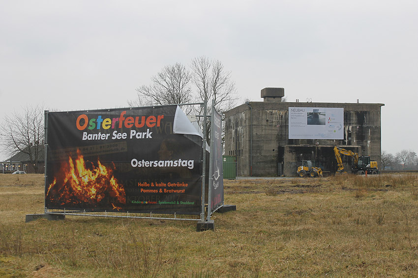 Heute erschien in der Wilhelmshavener Zeitung ein Artikel zum gestrigen Ortstermin am T 750 Banter Ruine. Der Verein zum Erhalt der Bunker am Banter See möchte u.a., dass der Lüftungsturm erhalten bleibt. - Entweder am Originalplatz auf dem Dach, oder im intakten Zustand auf einen Standortplatz neben den Bunker verbracht, bzw. an einen anderen nahen Ort als Relikt versetzt. Die Wasserspeier werden nach Aussage von GGS erhalten bleiben. Größere Entfestigungsschnitte wird es nicht geben. Auch das Innere soll nach Vereinswunsch in ein oder zwei Räumen durch eben diesen für eine Dauerausstellung genutzt werden. Der Verein wird sich nach Kräften für die Verwirklichung seiner Vorstellungen einsetzen, soll nun in die Planungen mit einbezogen werden und begleitet die Zukunft des Bunkers. "Bunker soll als Markenzeichen erhalten bleiben".